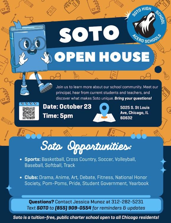 8th Grade Families Open House Do you know any 8th graders interested in attending Soto next fall?We’d love to meet them! Please share this with families and invite them to join us next Thursday for our information session.📲 Scan the QR code to register!¿Conoces a algún alumno de 8.º grado interesado en asistir a Soto el próximo otoño?¡Nos encantaría conocerlo! Comparte esto con las familias e invítalos a nuestra sesión informativa el próximo jueves.📲 ¡Escanea el código QR para registrarte!